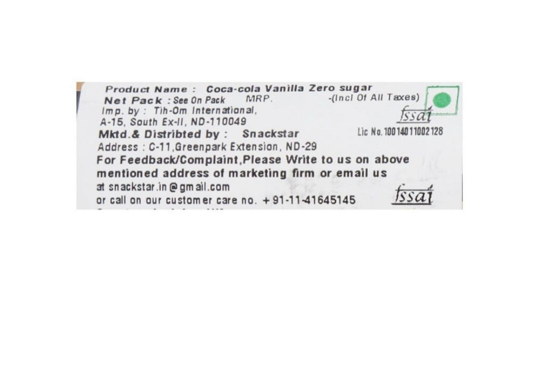 Coca-Cola Vanilla Soft Drink (Zero Sugar) 330ml