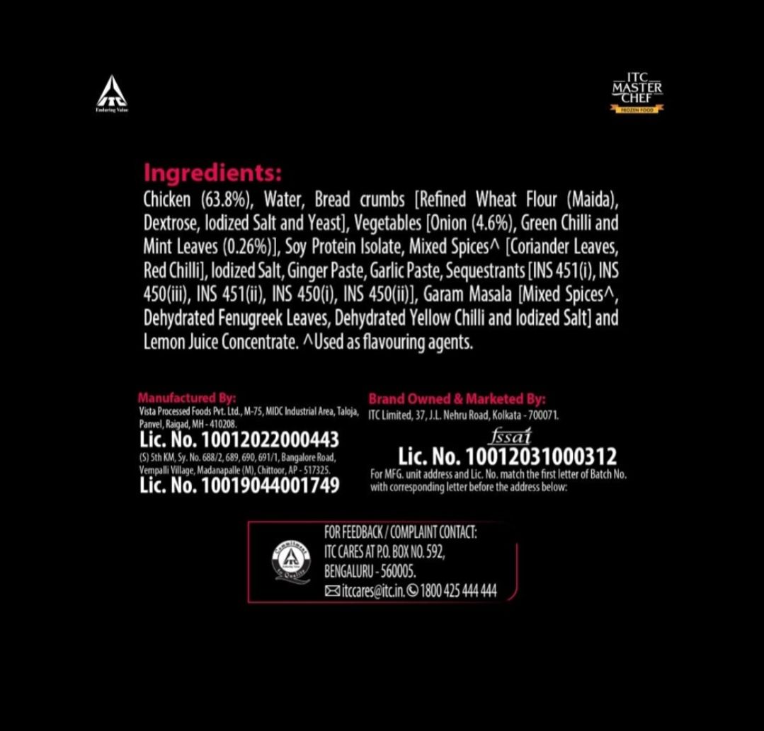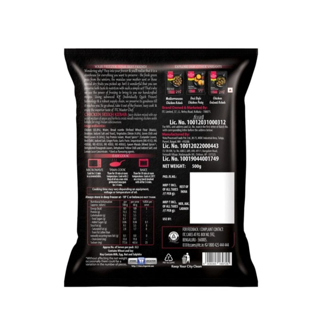 ITC Master Chef Chicken Seekh Kebab (Frozen) 500g