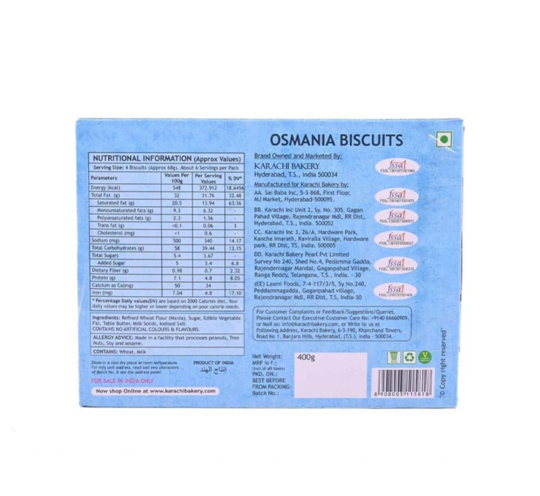 Karachi Bakery Osmania Bakery Cookies 400g