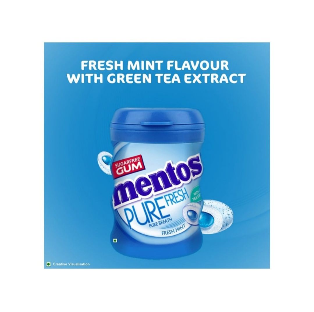 Mentos Pure Fresh Mint Chewing Gum (Sugar Free) - Pack of 2 (2×54.6g)