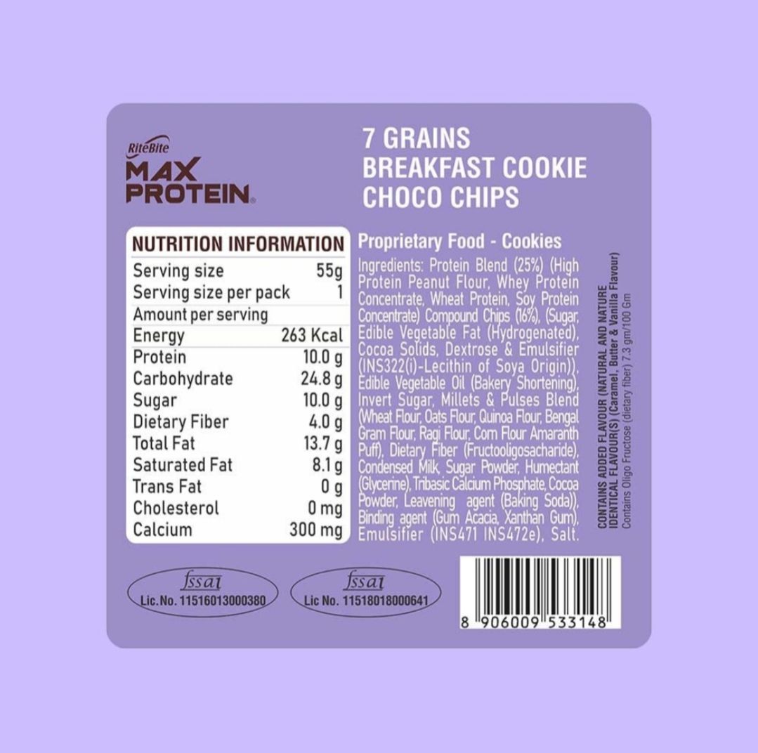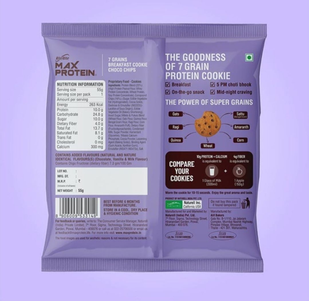 RiteBite Max Protein Choco Chip Cookies 55g