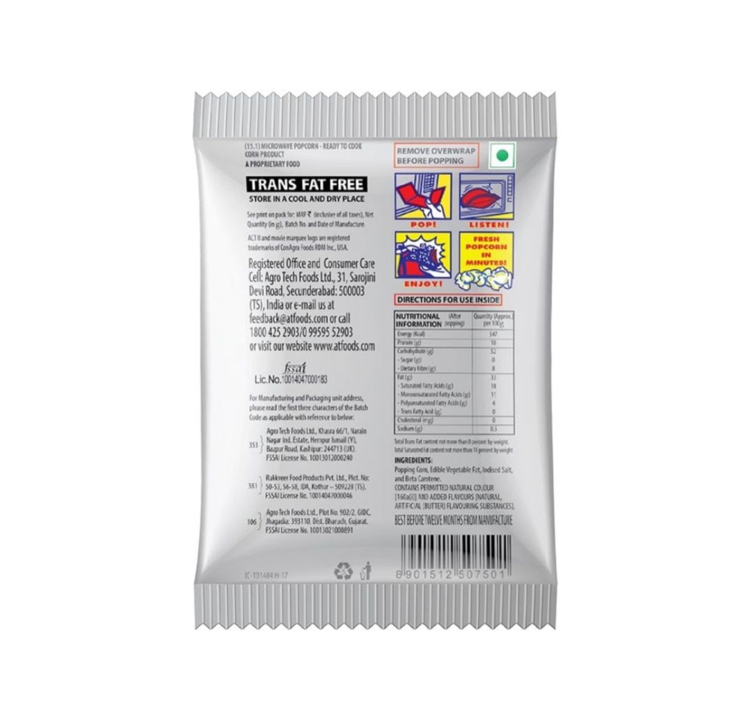 Act ll Butter Lover's Microwave Popcorn 33g