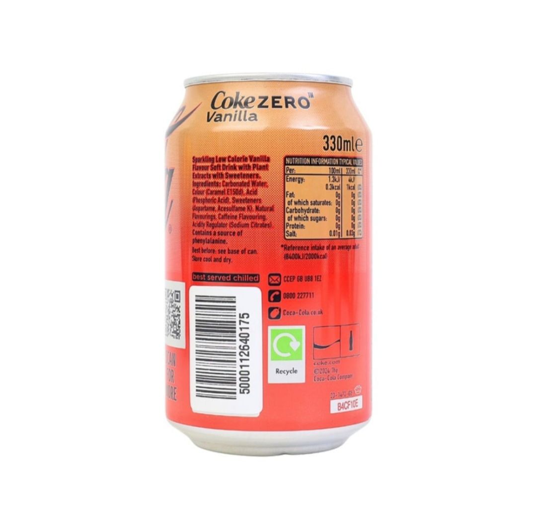 Coca-Cola Vanilla Soft Drink (Zero Sugar) 330ml