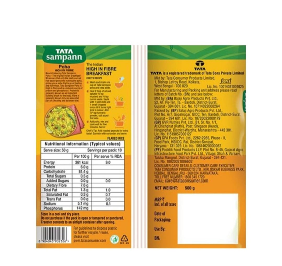 Tata Sampann High In Fiber Thick Poha 500g